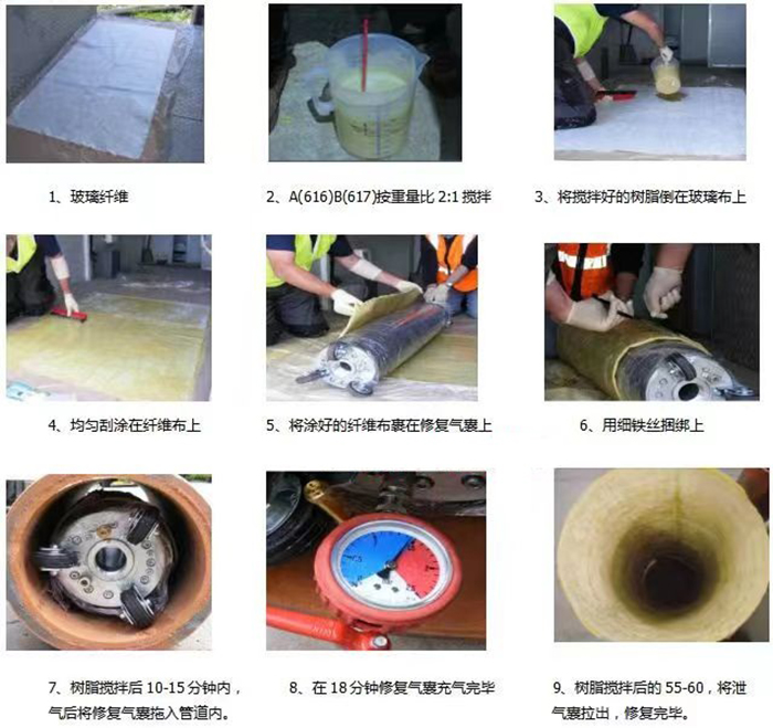 管道維修是指根據管道的破損點對現有管道進行直接維修,以實現管道的正常運行。根據管道的具體情況和材料,采用機器人或人工方法(管道維修用氣囊、管道維修材料)進行點對點維修。